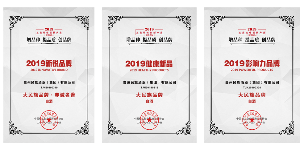 在中国轻工业企业投资发展协会主办的”增品种、提品质、创品牌”的颁奖典礼上,民族酒业-大民族品牌荣获了三项殊荣,分别是”2019新锐品牌奖、2019健康新品奖、2019影响力品牌奖“。殊荣的背后,是行业对大民族品牌的认可、是经销商对本公司产品的认可,也是众多消费者对大民族酱香品质的认可。